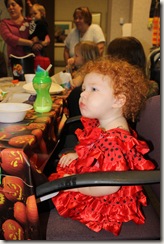 Then tonight, the little girl who won’t let me brush her hair, let alone put a bow in it, kept bringing me hair bows (aka- “pretties”) to put in her hair. I think at one point we had 4 and a pony tail in. I managed to get a few pictures. I must bribe her a lot to take pictures for Grandma because she climbed on the rocker and said “picture, Grandma?”